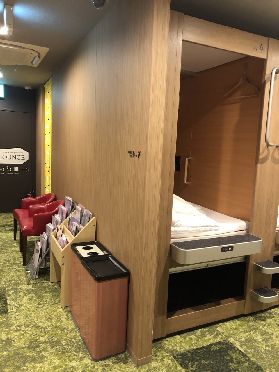 キャビンルーム(カプセルホテル)にキャンペーン価格で泊まりました。申し訳ない程のお手頃価格でしたが、通常に泊まる以上のサービスを感じました。フロントの接客も良く新しいホテルで清潔でした。好きなパジャマを選べてペットボトルやレトルトスープも頂けました。このスープが美味しくてびっくりしました。