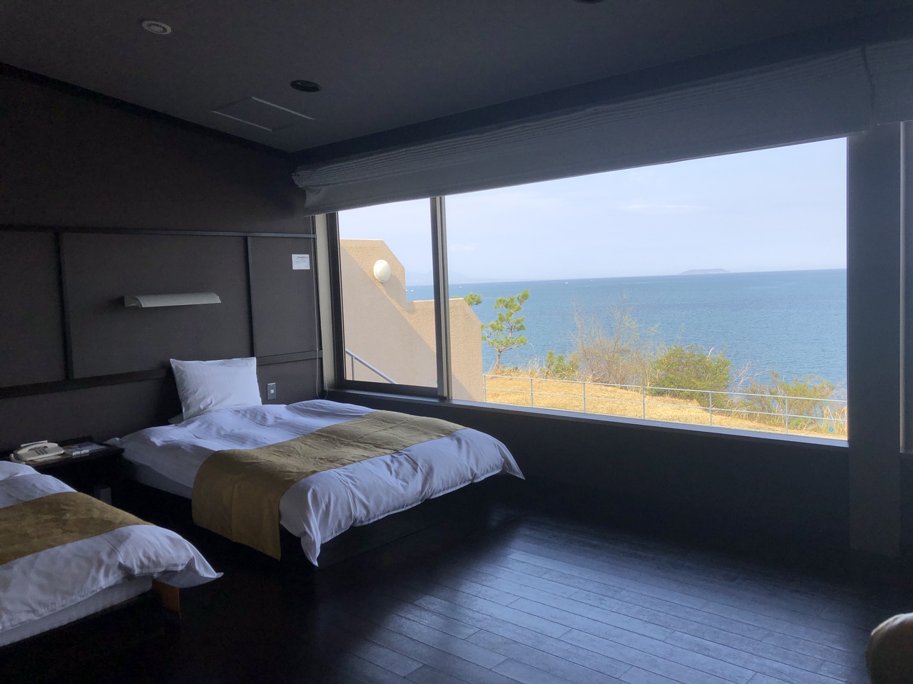 天草本渡の街並みから約5分程。海方面に走ると、とてもお洒落な、ホテルがあります。ロビーを、入ると。一面ガラス張りで、海が一望でき、とても、素晴らしく、落ち着いた心が洗われるような、とてもリッチな感じて、のんびり別荘気分が味わえ、ワクワクするホテルです。