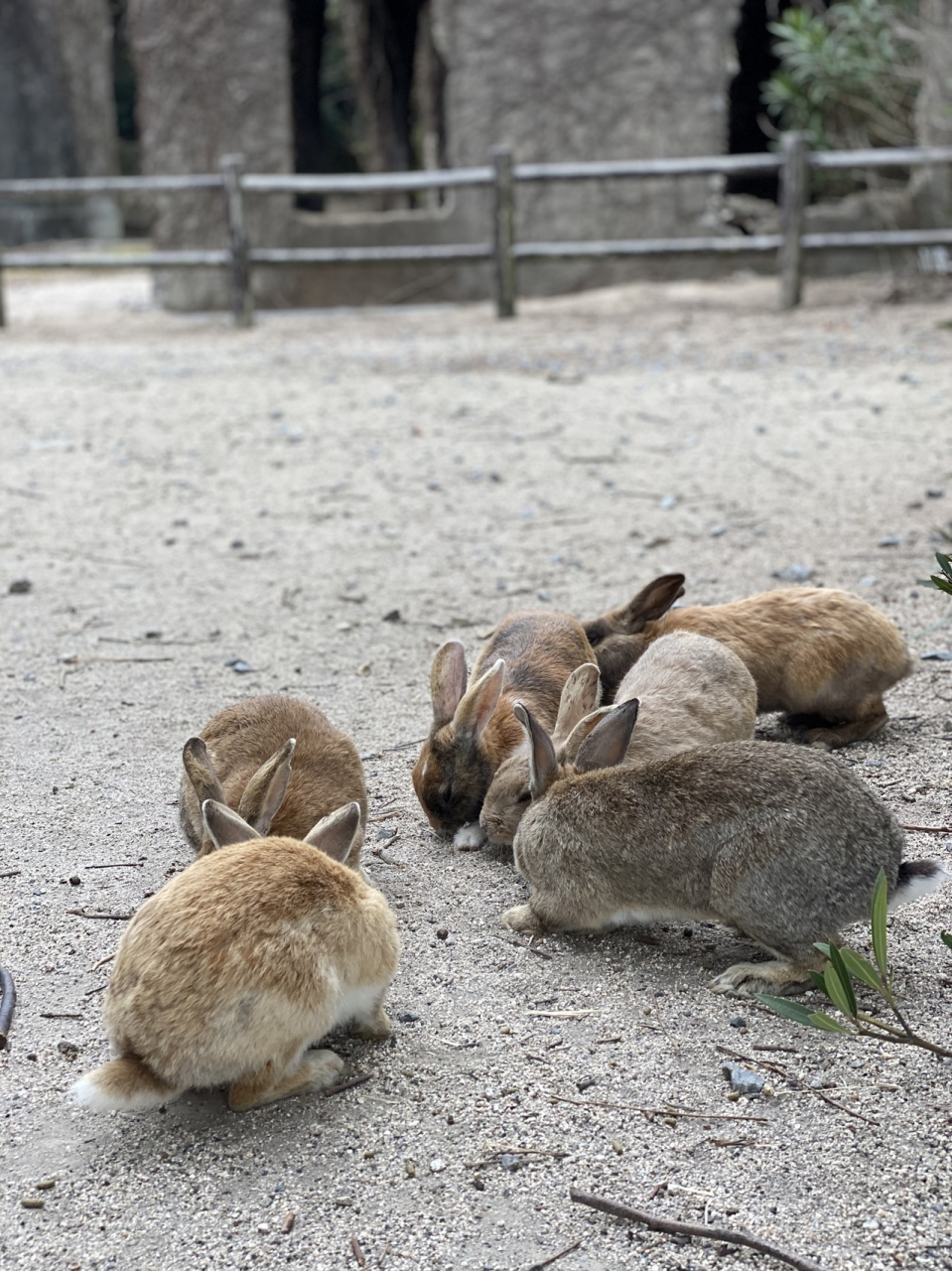 島に着岸するとすでに可愛いウサギがたくさん戯れています。