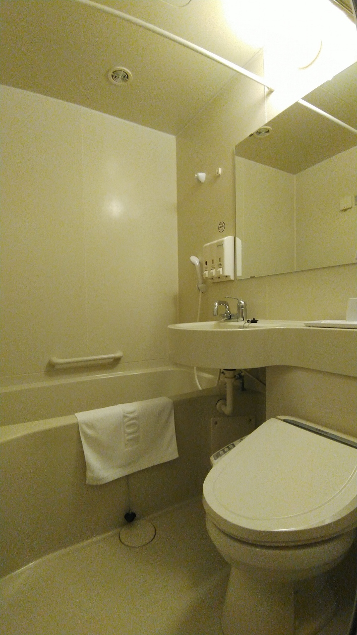 シングルの部屋はとても狭く、荷物を広げるスペースはありません。水回りもとてもコンパクト。大浴場はありません。無料の朝食が付いていますが、ビュッフェスタイルではなく、給食のように端から おかず→ご飯→味噌汁と取っていく方式(笑)まぁ、出張時には「無いより良い」ですけどね。