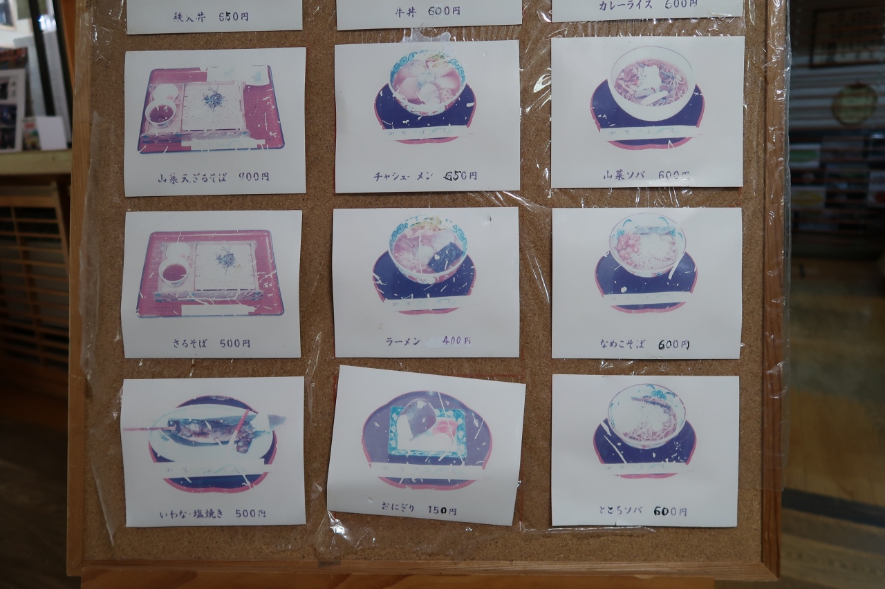 昼食で注文したのはホロホロ丼とイワナと山菜天丼。少し混んでいたので30分ほど待ちました。ホロホロ丼はホロホロ鶏の5切れと長葱、温泉卵。薄切りの割にはホロホロ鶏がしっかりとした肉質で旨味も十分。温泉卵を崩すと、甘辛なタレがまろやかになり美味しい。ただ鶏肉は少なく少々物足りない。イワナと山菜天丼のイワナは噛むとホロリと身が崩れます。名前には山菜となっていますが、しし唐と隠元だったと思います。意外だったのは味噌汁。コリコリした食感と海藻独特の粘りが美味しかったです。