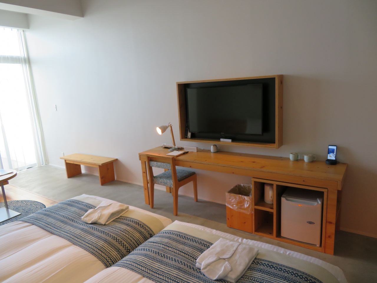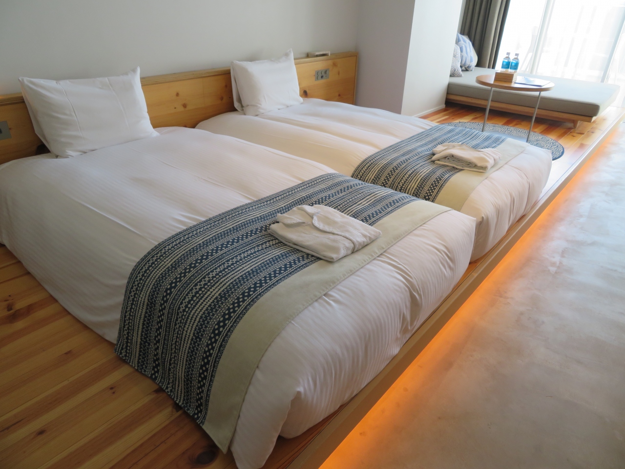 お部屋は土間の部分と板の間の部分があります。水回りはそれぞれ独立しているのは嬉しい。お部屋から海が見たければ、私が宿泊したお部屋以外は海が見えますが、屋上テラスは誰でも自由に出入りでき、そこから景色を見る事ができるので、それで十分。伊良部大橋も見えますが、ちょこっと遠いかなという印象でした。