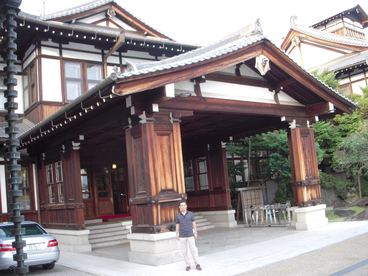 明治時代に建設された御殿のような木造和風建築の本館は、ロビーにピアノや柱時計を配した歴史感じる華麗な雰囲気でした。