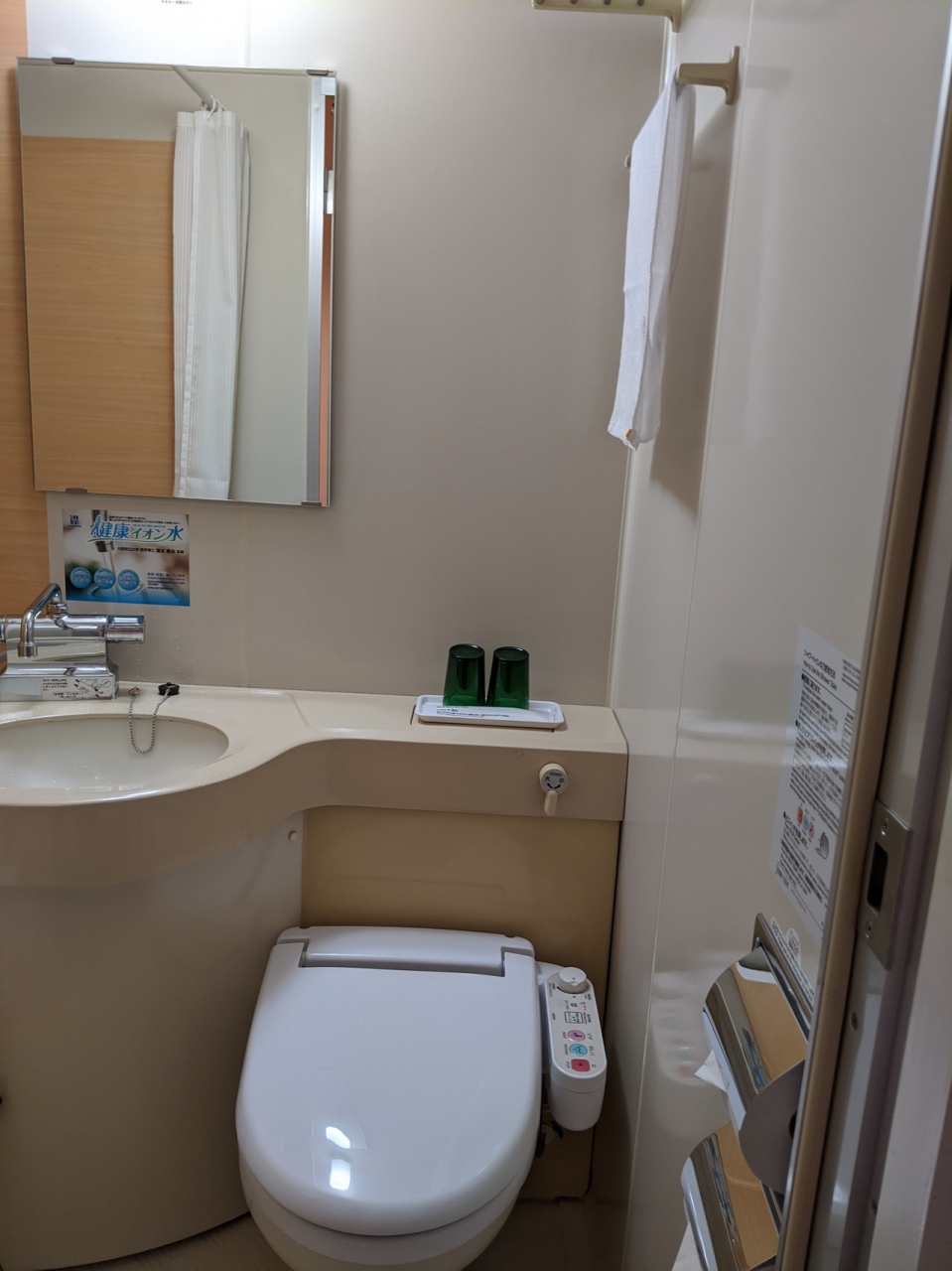 フロントでカミソリやお茶、パジャマ、枕(部屋にももちろんありますが低反発枕の固さ違いがあります)等貰えます。女性はアメニティーを5つ選んで貰えるようになってます。