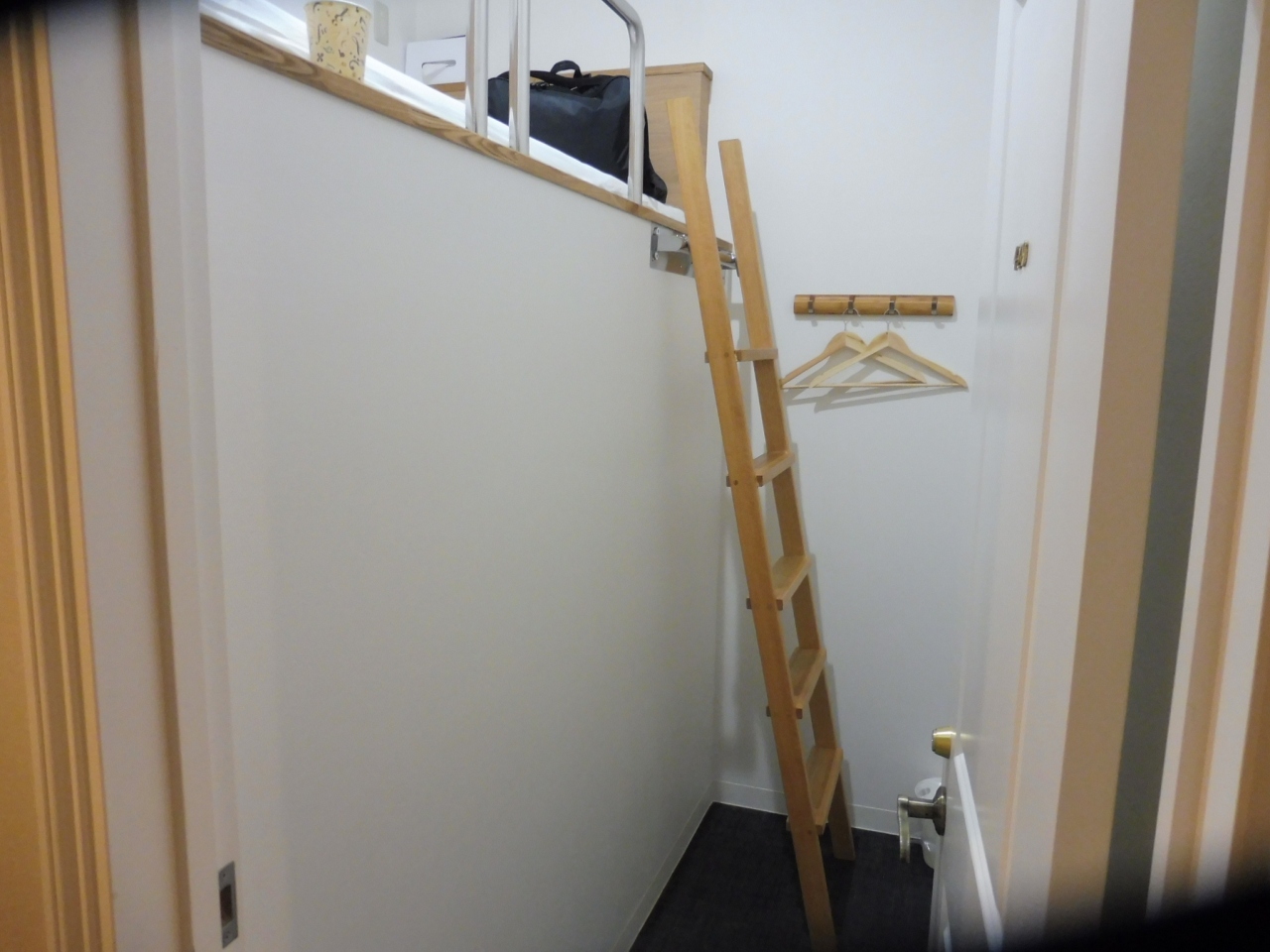 上段ベッドの位置はかなり高く、どこに行くにも梯子の上り下りが必要で、これがちょっとしんどかったです。