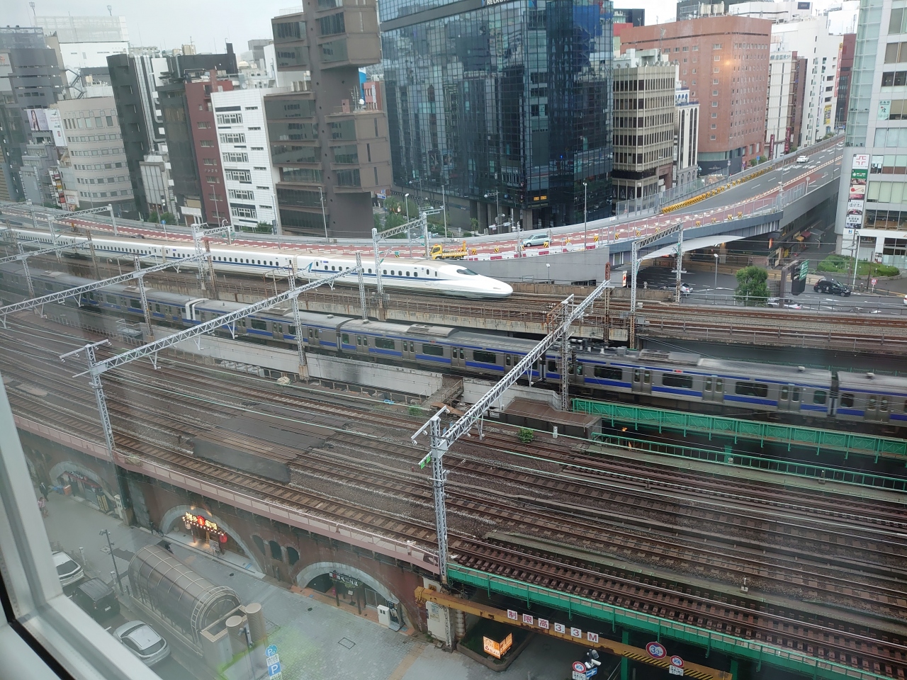泊まった部屋は、JRの高架側であり鉄道の音が気になるかな、と思ったが、防音はしかっりしており問題ありませんでした。山手線な京浜東北線に交じって新幹線や東海道や常磐線の特急が走り回るのは、鉄道好きでなくても楽しい。