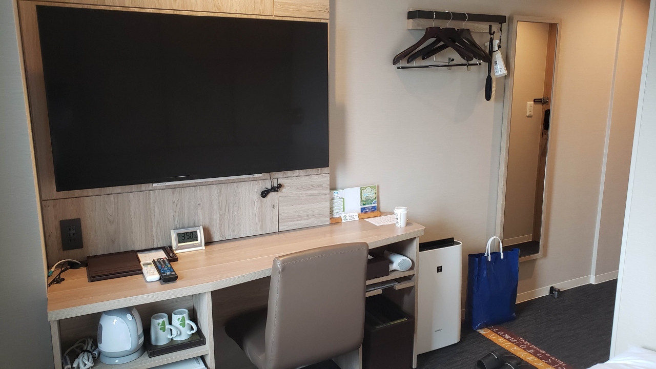 コロナ影響で格安で宿泊できました。松本駅からは400メートルほど、ちょいと歩くが、そこまで遠くない。お部屋は13平米ぐらいで、広くはないけど内装は木目調のスーパーホテル標準。テレビが大型なのが良い。温泉は時間交代制だけど気持ち良い。朝食はそんなに種類はないけど飲み物がたくさん種類あってよい。スタッフのホスピタリティもある。この値段で申し訳ない、って感じ。機会があればまたリピートしたい。
