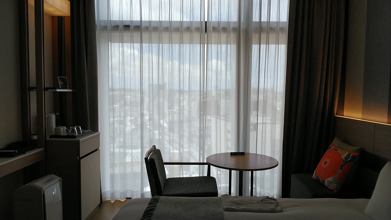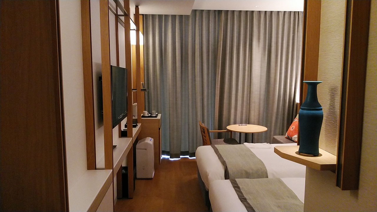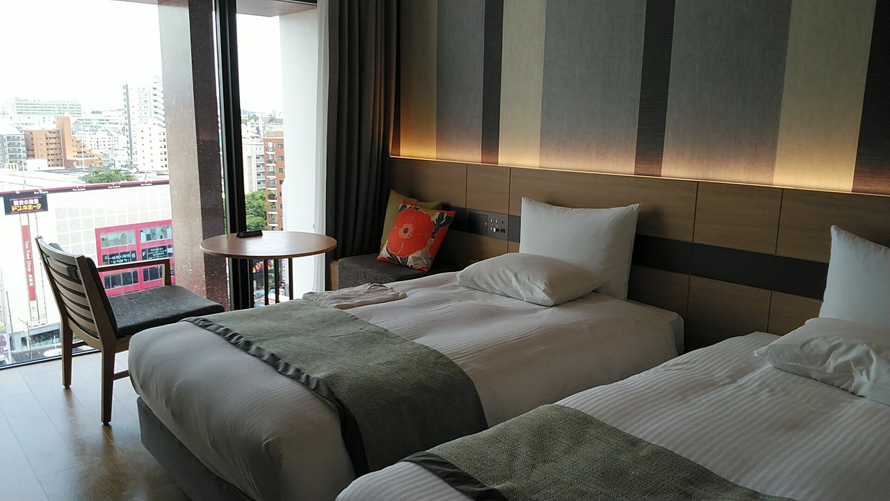 いつもはダブルの部屋で今回はツインの部屋を2泊予約しました。少し早く着きましたが部屋が用意出来てるとのことでチェックインできました。部屋はデュベスタイルのベッドメイキングに加湿空気清浄機に浴室、洗面所がセパレート、床はフローリングに窓が大きく那覇の景色が一望でゆっくり出来ます。最上階13階にライブラリーがありコーヒーと紅茶サービスに夕陽が綺麗で外に出られるので風も心地よかったです。国際通りもすぐなので飲食等も便利でお気に入りのホテルです。