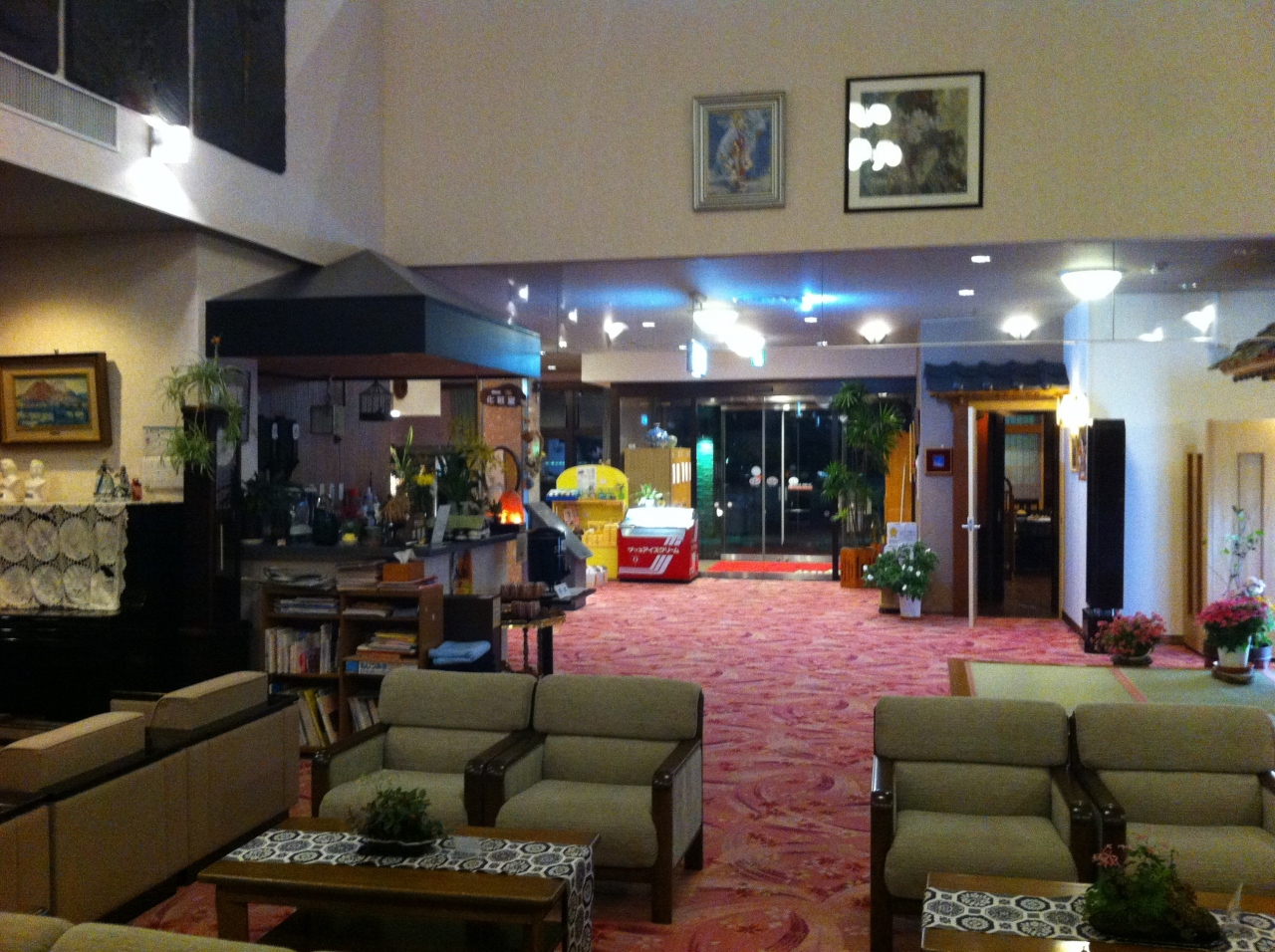 となりの新甲子温泉みやま荘とも連携していて、お風呂を入りにいけるような設定になっています。こちらのほうがロビーも広く、高級感ある調度品があり、お部屋はどちらも和風でしたが、こちらのほうが新しい感じがいたしました。