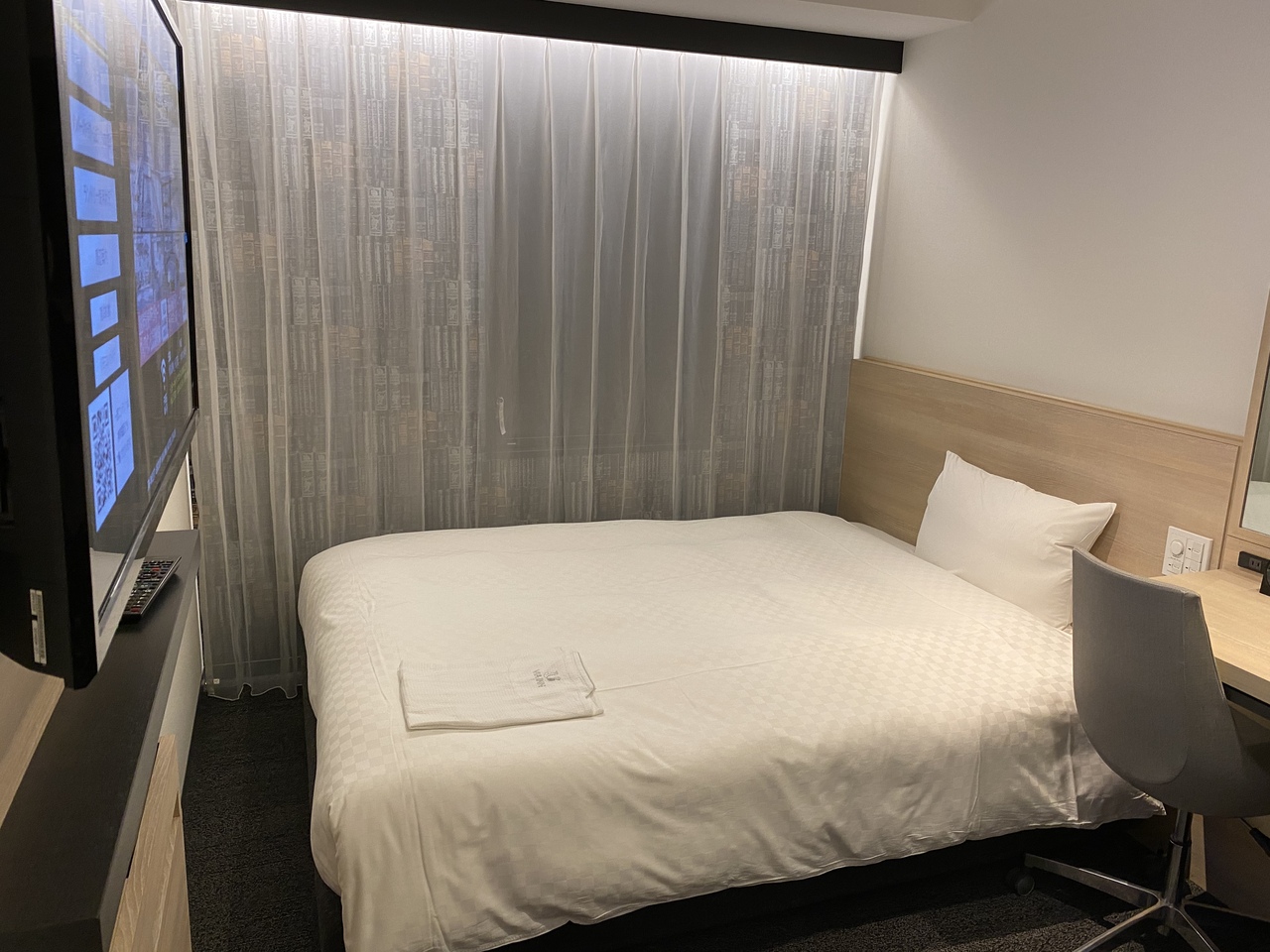 チェーン系ホテルだが、まだ新しいので部屋がきれい。ユニットバスの典型的なビジネスホテルだが、冷蔵庫、テレビ、湯沸かし器が揃っており不便なく過ごせる。