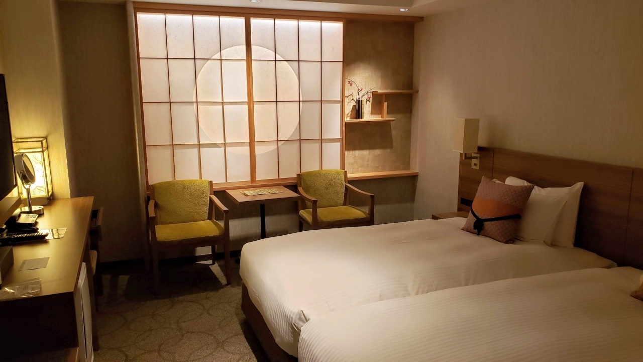 翌日に天橋立の高速バスに乗るため駅近くのこちらのホテルをチョイス。チェックイン時に地場のお菓子をたっぷり頂いた。モデレートツインの21平米の広めのお部屋です。昨年にオープンしたばかりなのでとてもきれいで和のテイストが感じられるお部屋です。眺めは期待できません。観光するにはちょっと中心から離れるが移動なのでちょいと1泊するにはよいホテル。大浴場があるとなおよかったな。