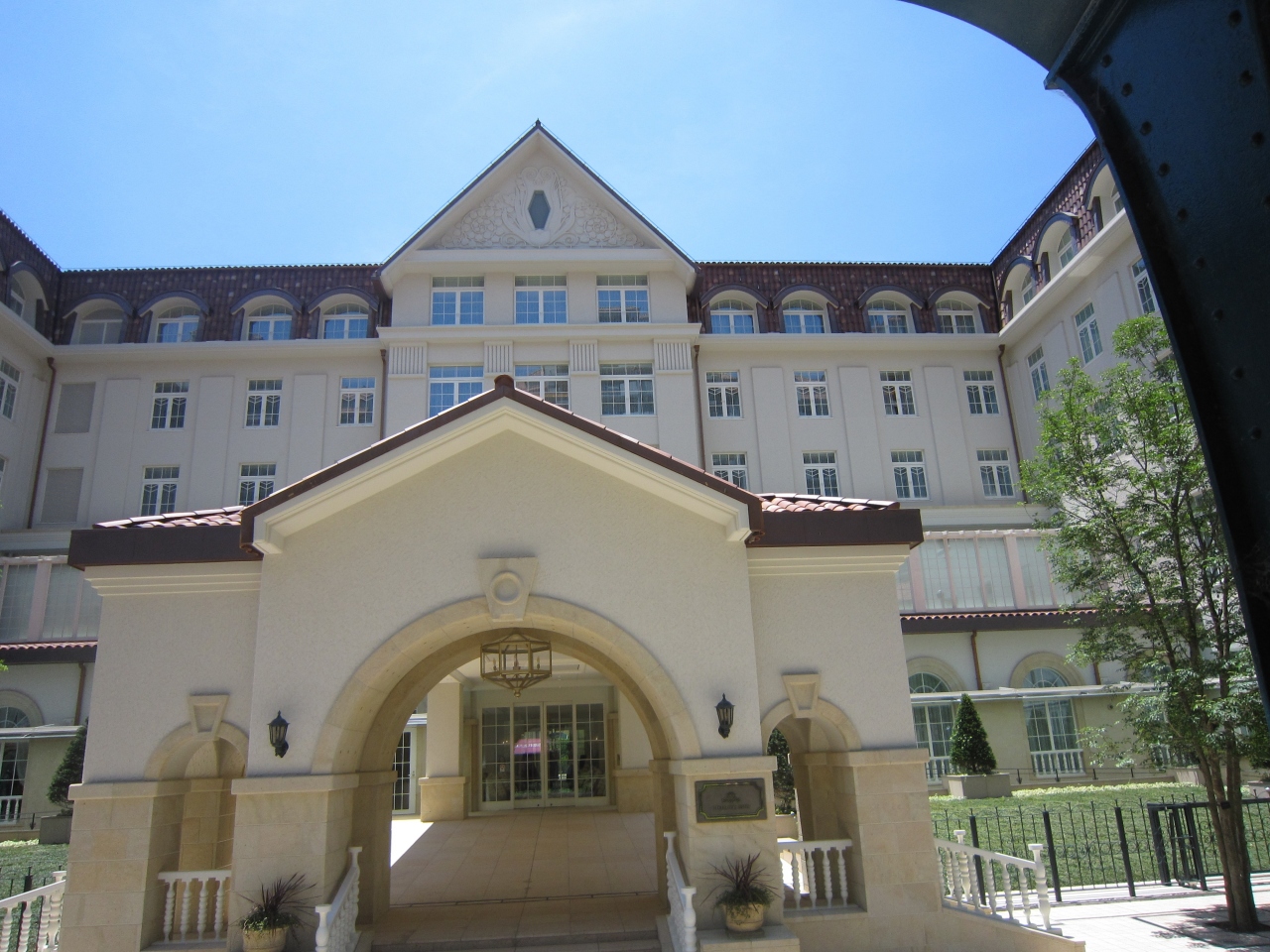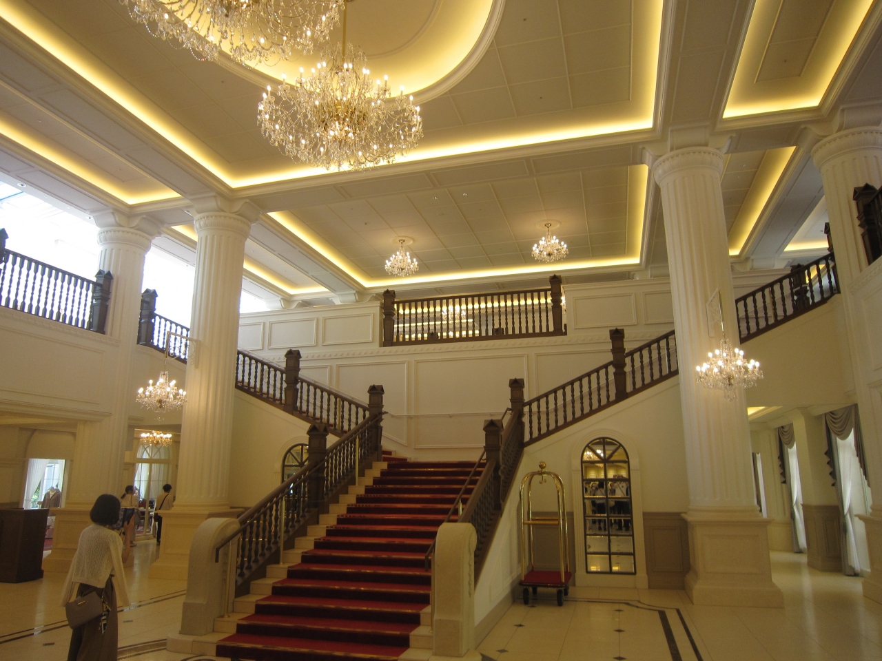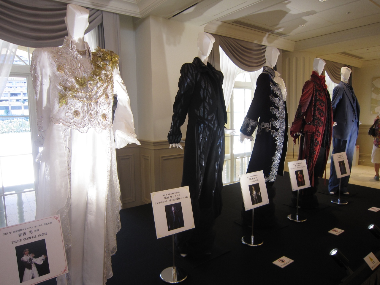 2020年7月21日に阪急電車宝塚南口駅前から宝塚大劇場横に移設してオープンした新宝塚ホテル。赤い旧館の切り妻屋根やレリーフ、ロビーの手すりなどを継承されているとか。2階には歌劇トップスターの衣装や実際に使用された小道具が展示されている。