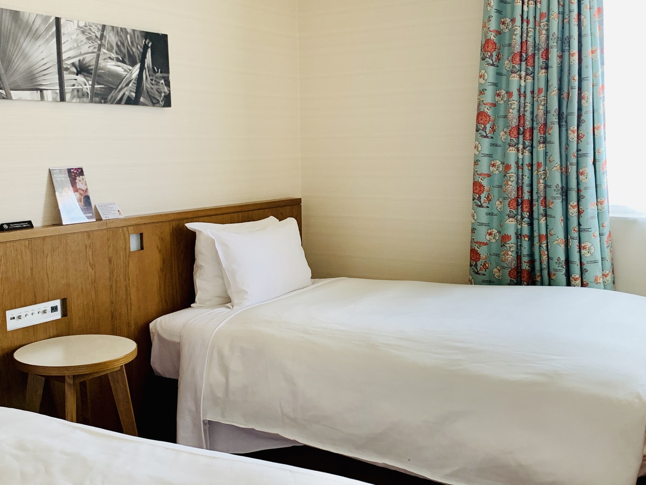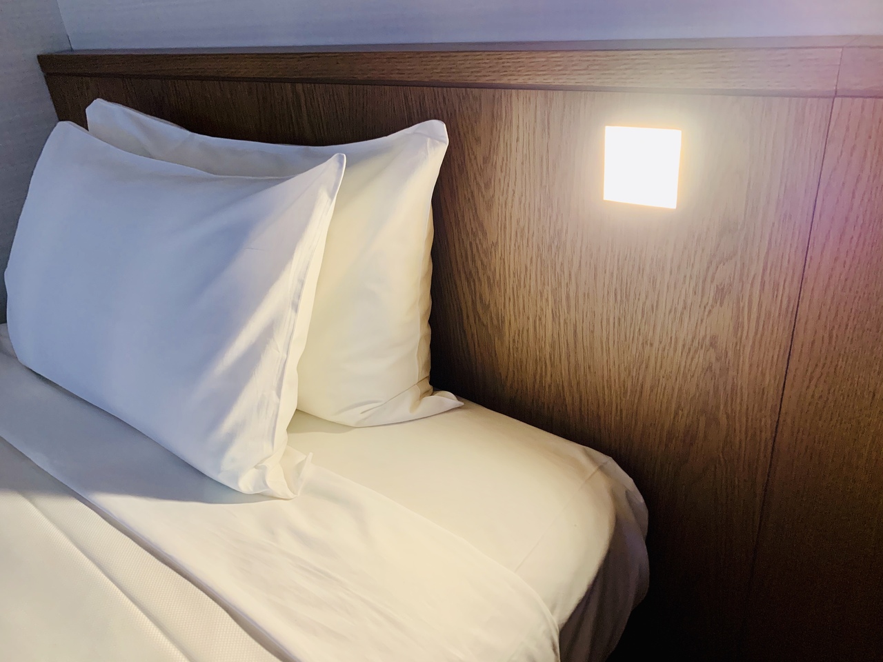 一人でしたが、口コミでシングル客室が狭いとの情報があったので、あえてツインルームに宿泊。結果、正解だったと思います。窓もあり換気もでき、快適に広く部屋を使えストレスフリーでした。又、洗面所と部屋の間には扉があり、空間としても落ち着いて過ごせました。いちばん嬉しいのは、やはり洗い場のあるお風呂(^^)、大きなバスタブ。コロナ対策で色々と過敏になっている中、湯船でリラックスできるのは至福の時間でした。1Fの便利なローソンなんですが...商品の種類が少ない?かなと感じました。