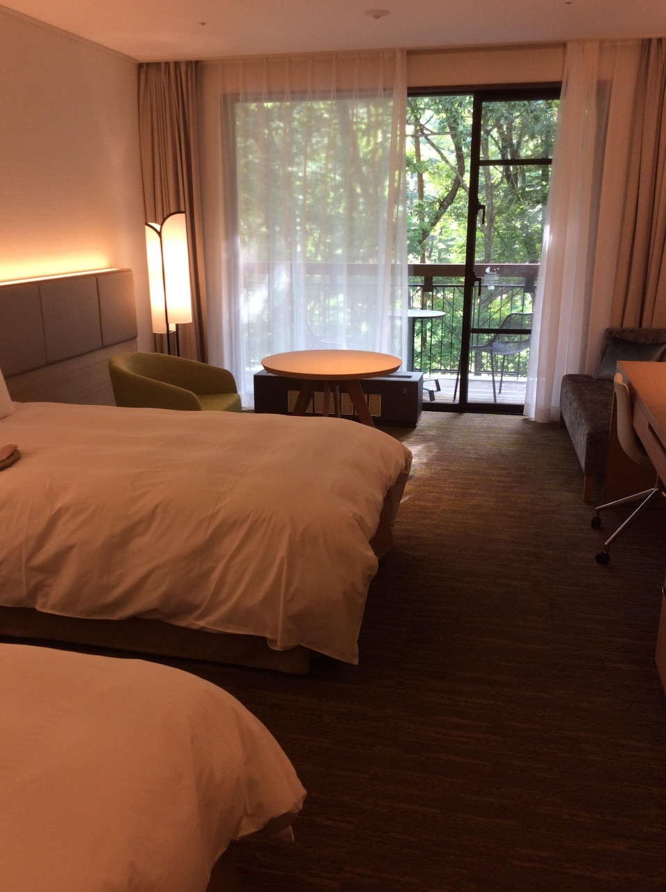 施設が新しく、部屋も広く、ラグジュアリー感はありますが、料金と比較すると若干割高に感じました。夕食は4000円分が標準で付いてきますが、品数がちょっと少ないです。部屋からはゴルフ場が見えましたが、野生の猿が横切るのを見ることができました。