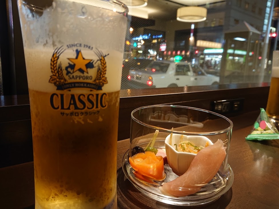 クラシックと99.99が飲み放題。おつまみも用意されていました。