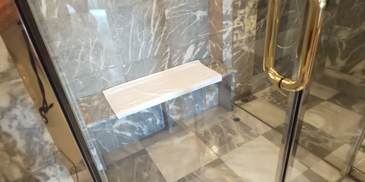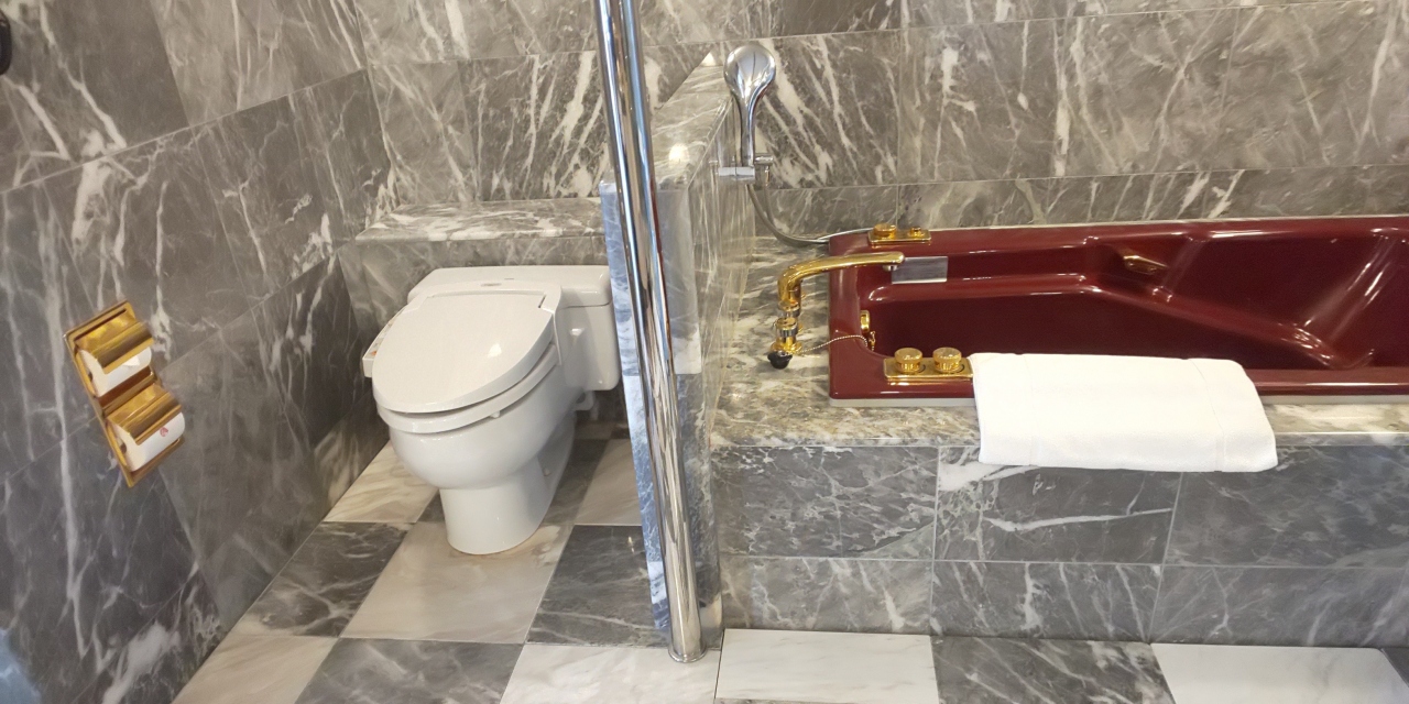 お部屋はひろく、トイレが2つ、サウナ、ジャグジーの湯船、など、