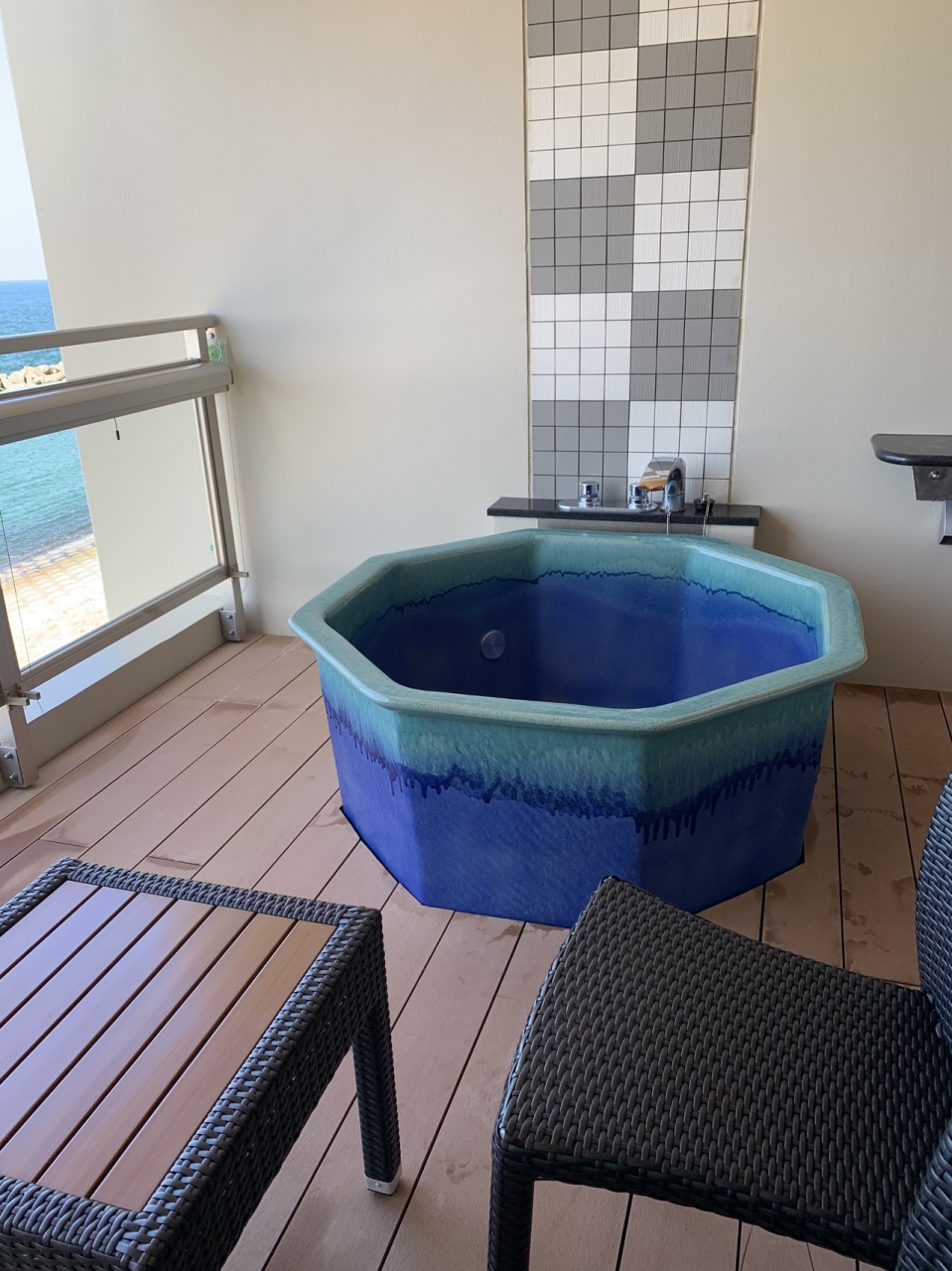 最上階の温泉大浴場は海を望むインフィニティ温泉になっていて快適です。