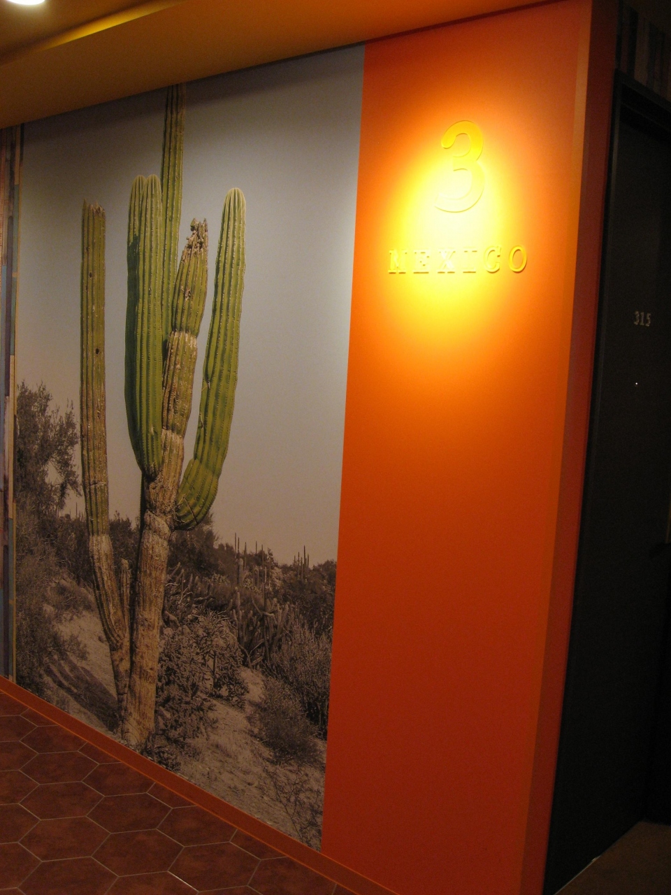 肝心の部屋ですが、インターナショナルと付いているだけあってフロアごと国の内装になっています、私が泊まったフロアはメキシコでした。廊下は良いのですが部屋の中は派手で少し落ち着かないです。ただお風呂がユニットではないのでそこは良かったです。