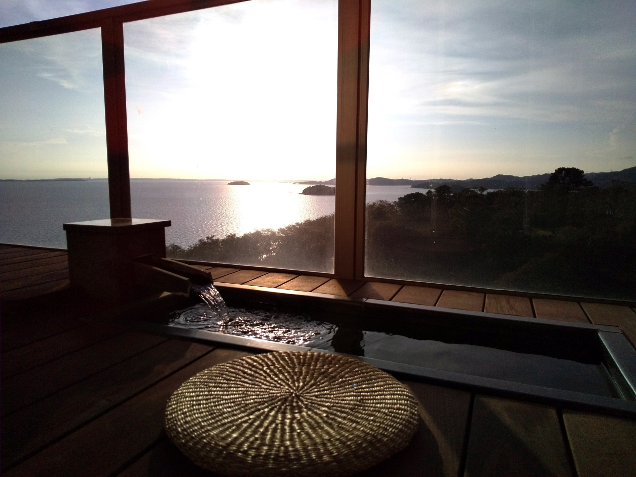 海に沈む夕陽を見ながらの足湯、最高でした。