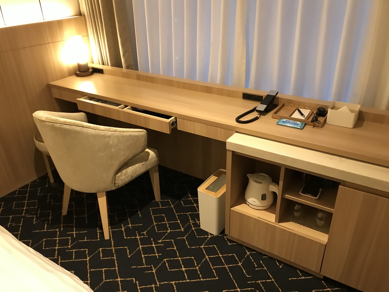 コンセントとUSB差込口のセットになったものが、カウンター中央、端、ベッドサイドにあって便利。