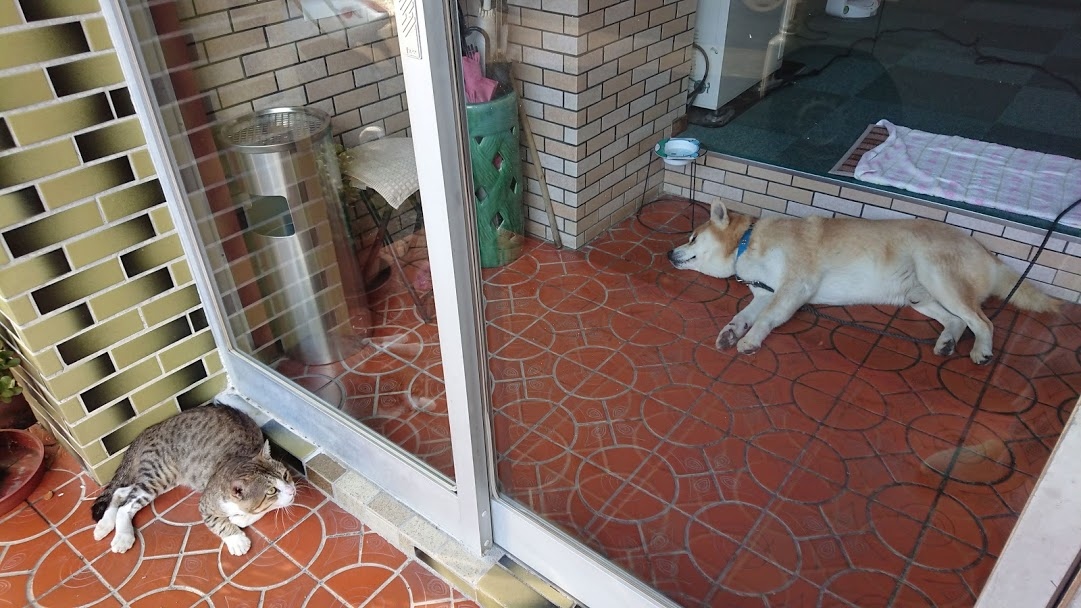 看板犬まる、が居ますがあまり愛想は良くないです。下手に触らないほうが良いかもです。