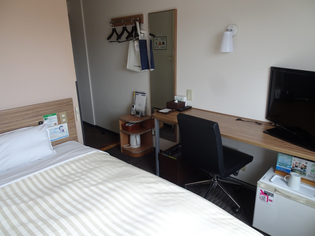 部屋は荷物置き場がなく狭いですが、ひと通り設備は整っています。