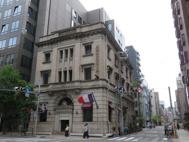 堺筋にあるレトロビルです。この建物はヨーロッパそのものです。イタリアに行ったとき、よく似た建物をよく見かけました。1階部分の入口のアーチは、フランス料理店が入っているようですがイタリア調です。2,3階との構造の違いもいいですね。