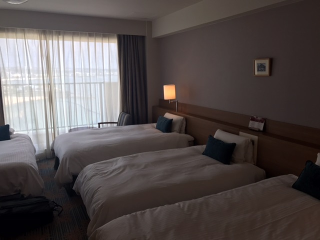 家族での沖縄旅行で、こちらで一泊しました。ホテル内は高級感があり、窓からはサンセットビーチがよく見えます。有料ですが、屋上にはプールがあり、子供達はそこで遊びました。付き添いたかったのですが、フロアに入るだけで料金を取られるので、妻に任せてしまいました。
