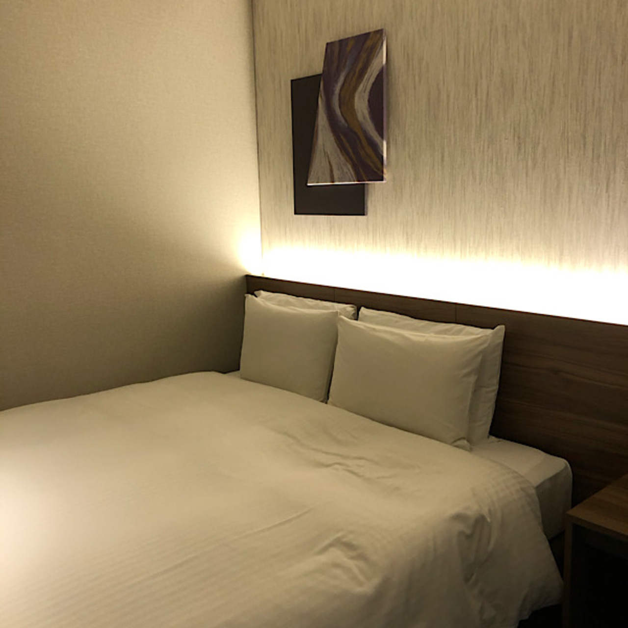 駅近にあるこちらのホテル、まだ新しいようですね。チェックイン時にサービスで除菌ジェルをプレゼントしてくれるなど、細やかな気遣いが嬉しかったです。お部屋はそれほど広くないものの、設備は必要十分で遮光も抜群。ベッドも快適で枕は1人あたり2個ありました。