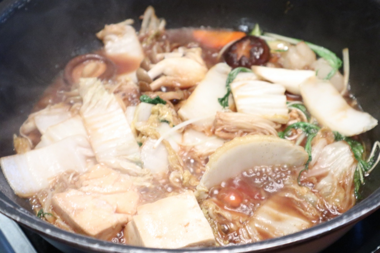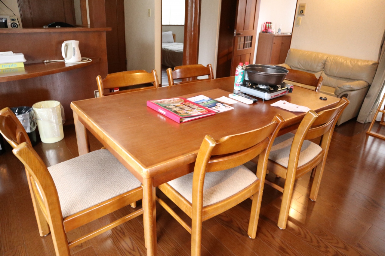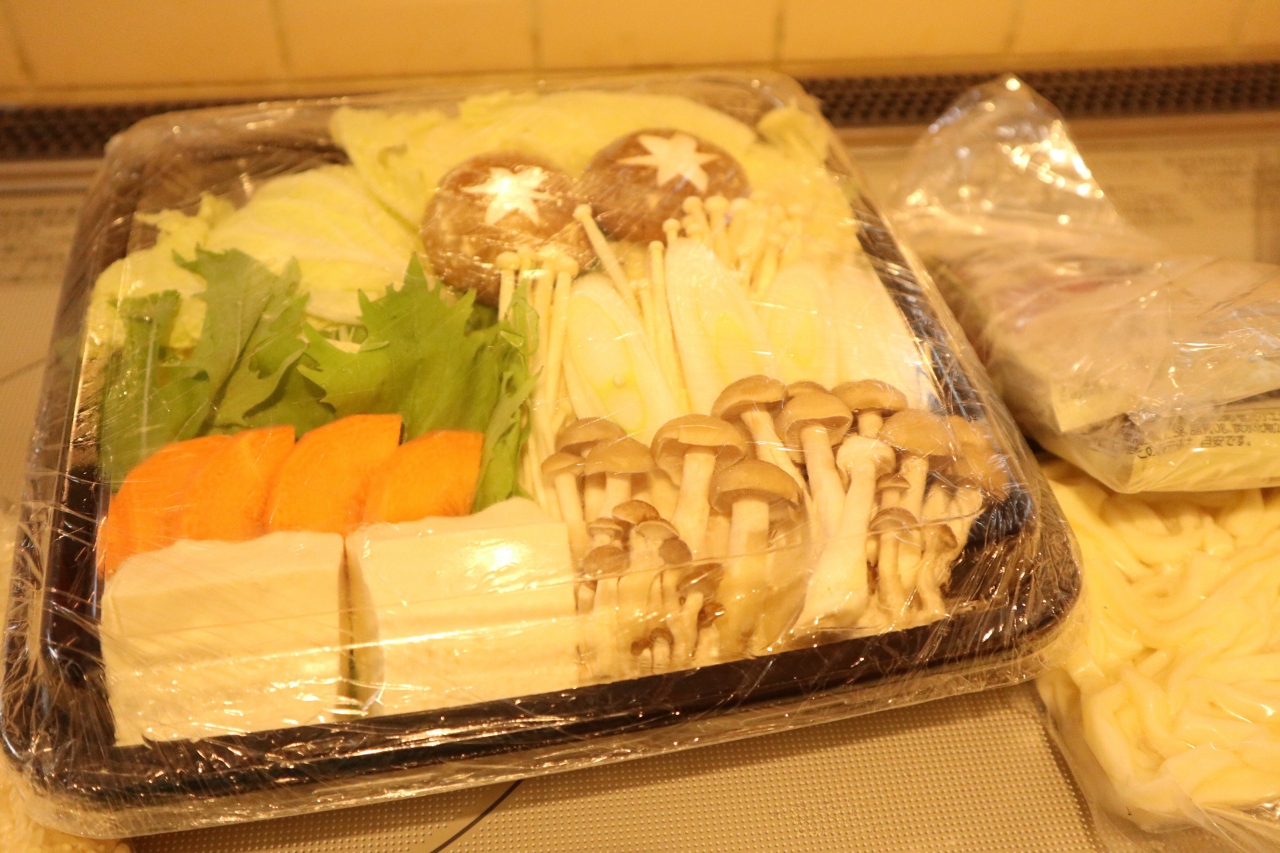 チェックインの3時にコテージに入るとすでにすき焼きセット、朝食セットが