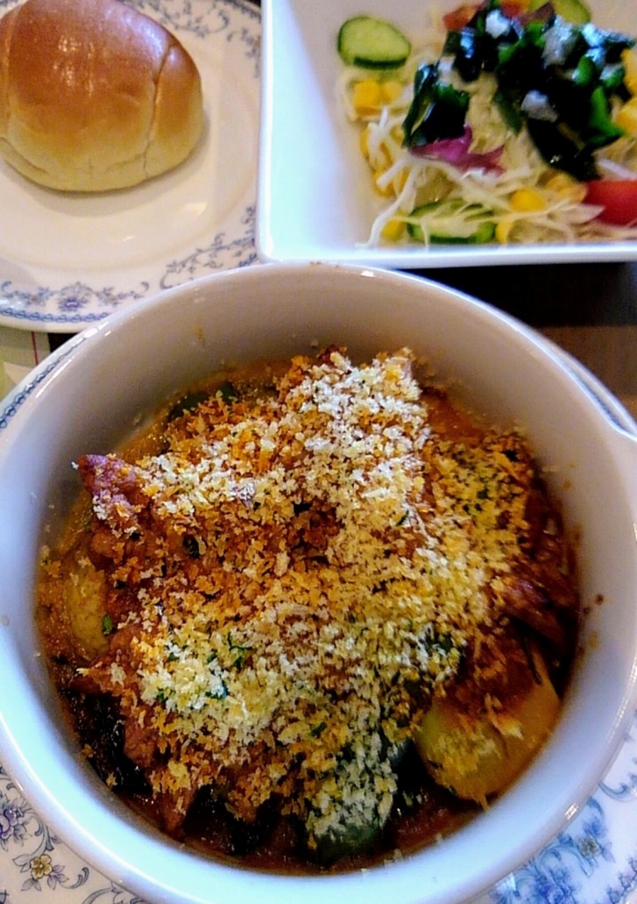 東京第1ホテル鶴岡の一階、フロント側から見て奥の位置にあるレストラン。レストランというよりもカフェといった雰囲気でした。ランチタイムは11時半から14時半までで14時がラストオーダーです。こちらの週替わりランチがお得でした。税サ込みで1000円!ライスまたはパン、サラダ、ドリンクが付いています。私は豚肉とトマトのオーブン焼きをオーダーしました。豚肉がジューシーでトマトの酸味と相まって美味しかったです。パンにしましたが小さなロールパン一つだったのでライスにしたら良かったです。