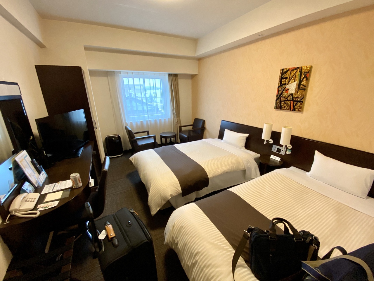 斜里周辺は宿が少なくて、選択肢が少なくて困りました。このホテルは駅前、ということもあり、人気があって、早くから満室でした。ビジネスホテルのチェーンですが、大浴場と露天風呂があるので、コスパは良い、という印象です。部屋は想像通り、少し狭めの19平米くらいですが、清潔で、特に気になることはありませんでした。バイキング形式の朝食も平均的な品ぞろえでした。