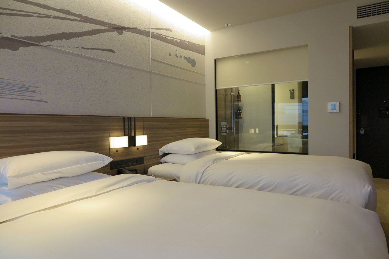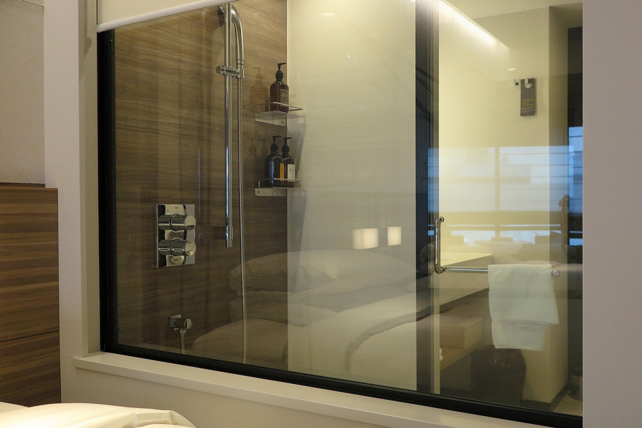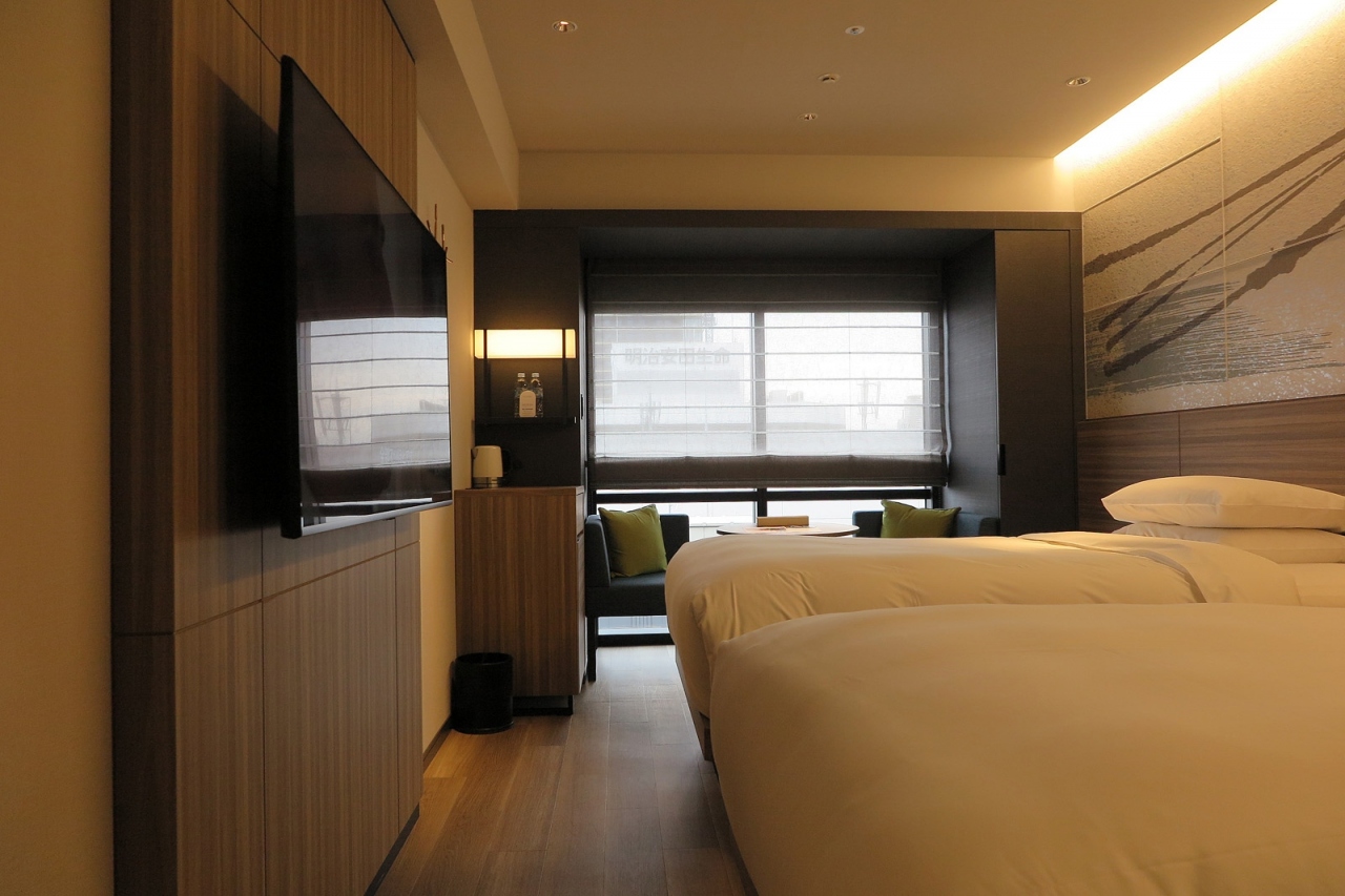 開業が2019年10月1日というホテルですから、まだ開業1年未満、どこも美しいままでした。客室には55インチのテレビ、高さのあるベッドもあって質感はなかなかのものでした。ただ仕事机がなく丸テーブルのみでしたので、仕事で利用するには少し不自由するかもしれません。また17:30~21:00の「THE SEMBA ハッピーアワー」にビールがなかったことが残念でしたが、朝食には串カツやどて煮など大阪らしさを感じられて満足しました。また大浴場の桶や椅子はヒノキで良い香りでしたし、一角は外気が入って露店風呂のよう、想像以上に楽しめました。