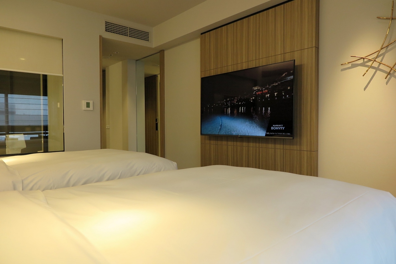 - 55インチの大型テレビ、背の高いベッドなど質感は悪くないのですが、仕事机がない点が辛いかな