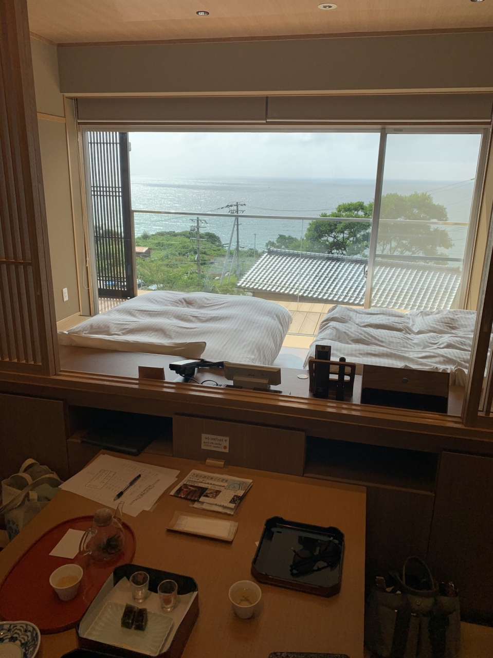 いろんな心遣いがあり大満足でした。夜食のおでんもgoodです。お風呂は貸し切り風呂のみですので、大きな風呂が好きな人は向きません。逆にプライベート感が好きな方はぴったりです。お部屋は洋和室でしたが、ベッドから海が見えて最高でした。