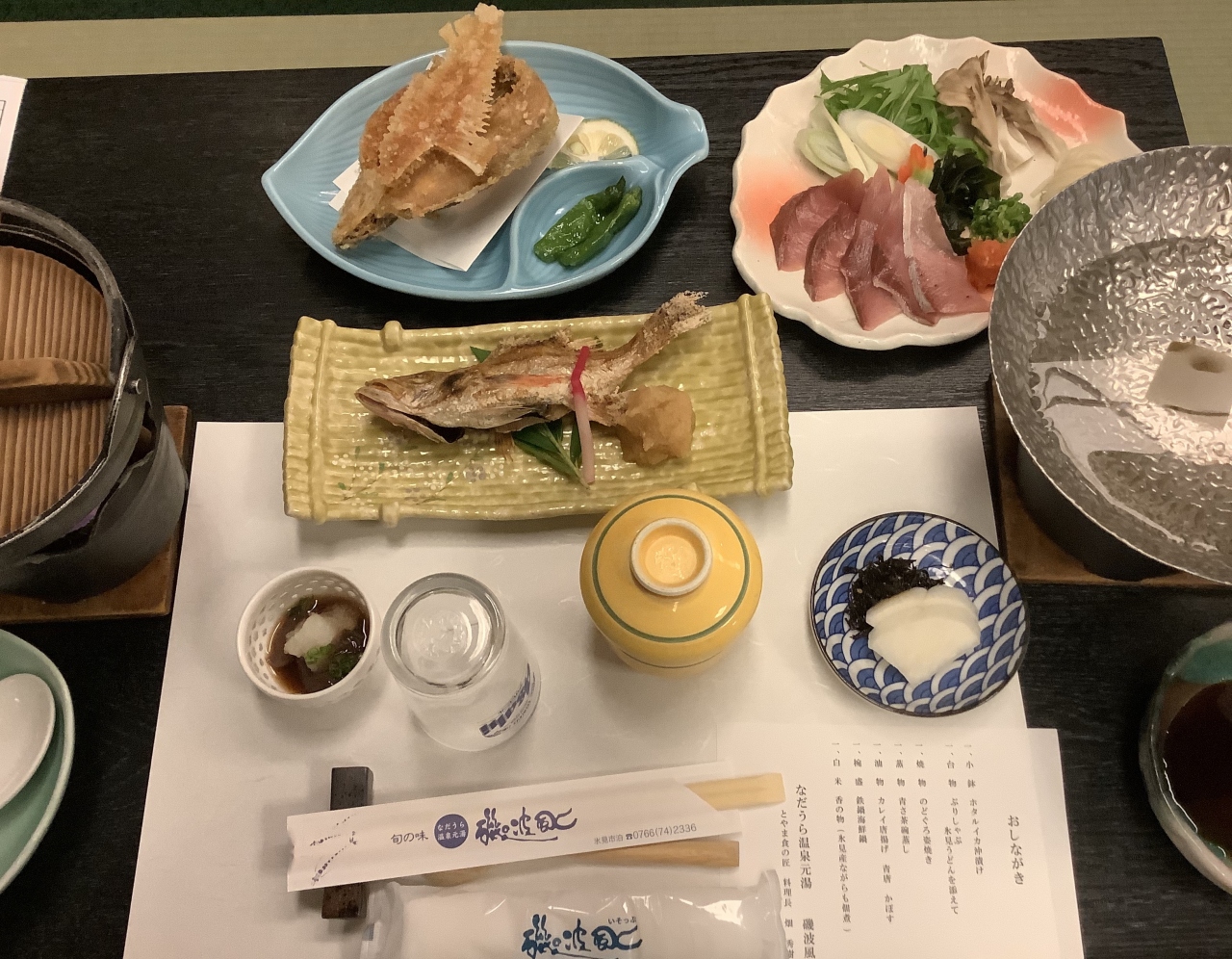 ノドグロの塩焼き、しゃぶしゃぶがついた夕食で小ぶりでしたがカレイの唐揚げが骨まで食べれて美味しかったです