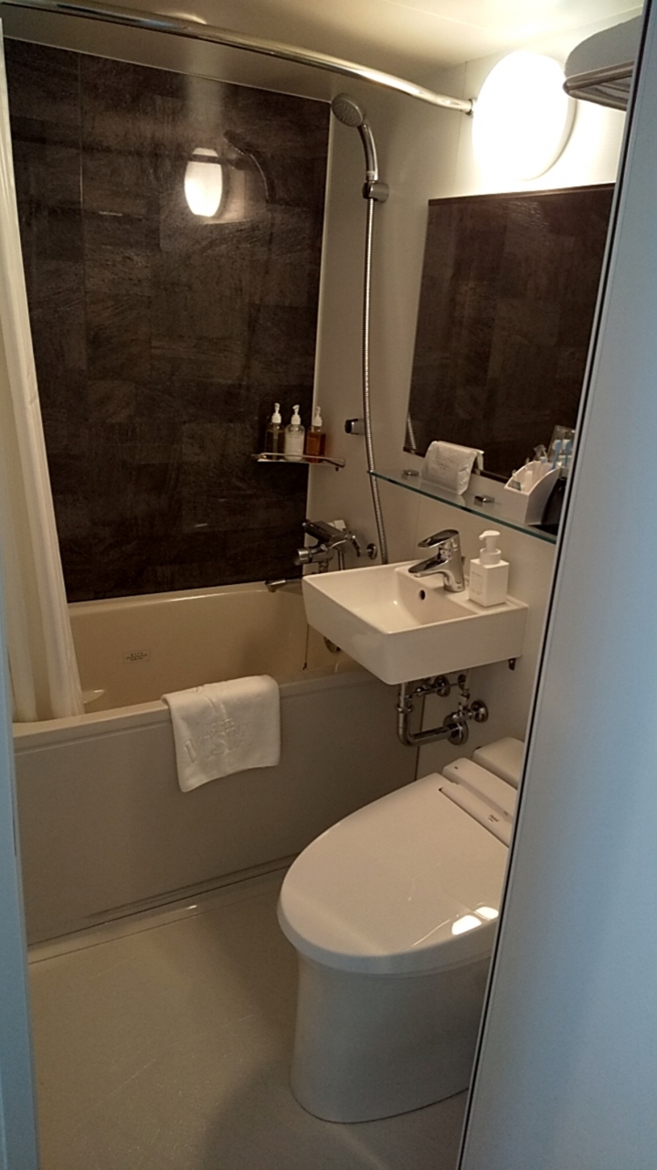 シングルに泊まったので部屋は狭いですが、デスクもあり便利でした。デスクにもベッド周りにもコンセントがあり、特にベッド近くのコンセントはちゃんと携帯も置ける小さな棚が設置してあって、細かい配慮を感じました。シングルの部屋はトイレ・バス・洗面が同じでしたが、部屋によってはわかれているようです。洗面台が小さくて顔が洗い難い点以外は、快適でした。アメニティも良い香りのボディソープ・シャンプー・コンディショナー・ハンド&洗顔ソープがあって、充実しています。