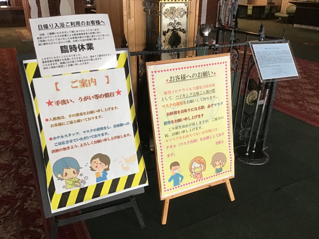 ウィルス対策で日帰り入浴は断っている宿泊施設も
