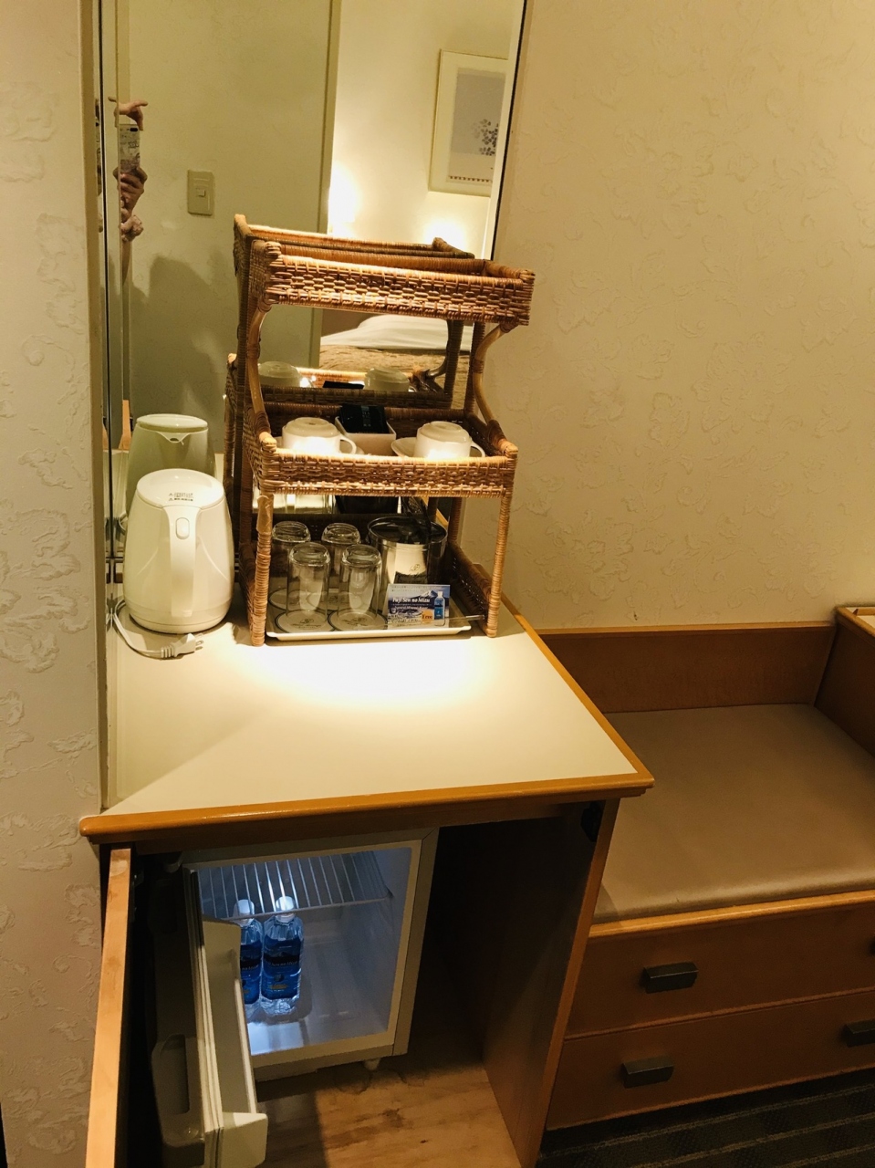 1人なのでお部屋が広く使えるように、ツインではなくダブルベッド1台のお部屋にして正解でした。