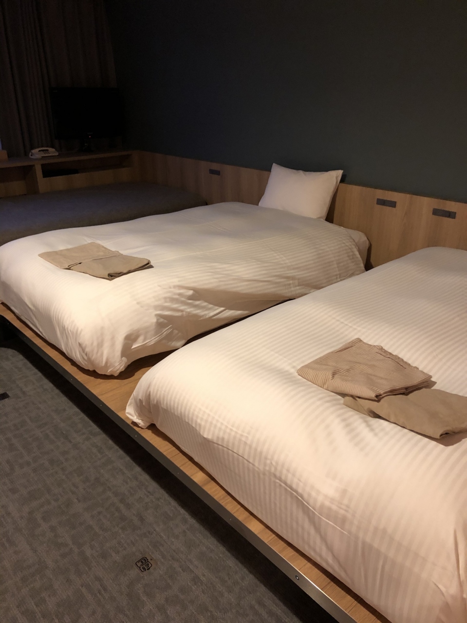 ツインの部屋に宿泊しました。広くはないですがデイベッドもありのんびり寛げます。地下にあるサウナ施設は現在宿泊客専用になっておりサウナ好きには混んでなくて快適です。1階のラウンジはコーヒーや冷たい飲み物が飲み放題で夜はお酒も飲み放題です。