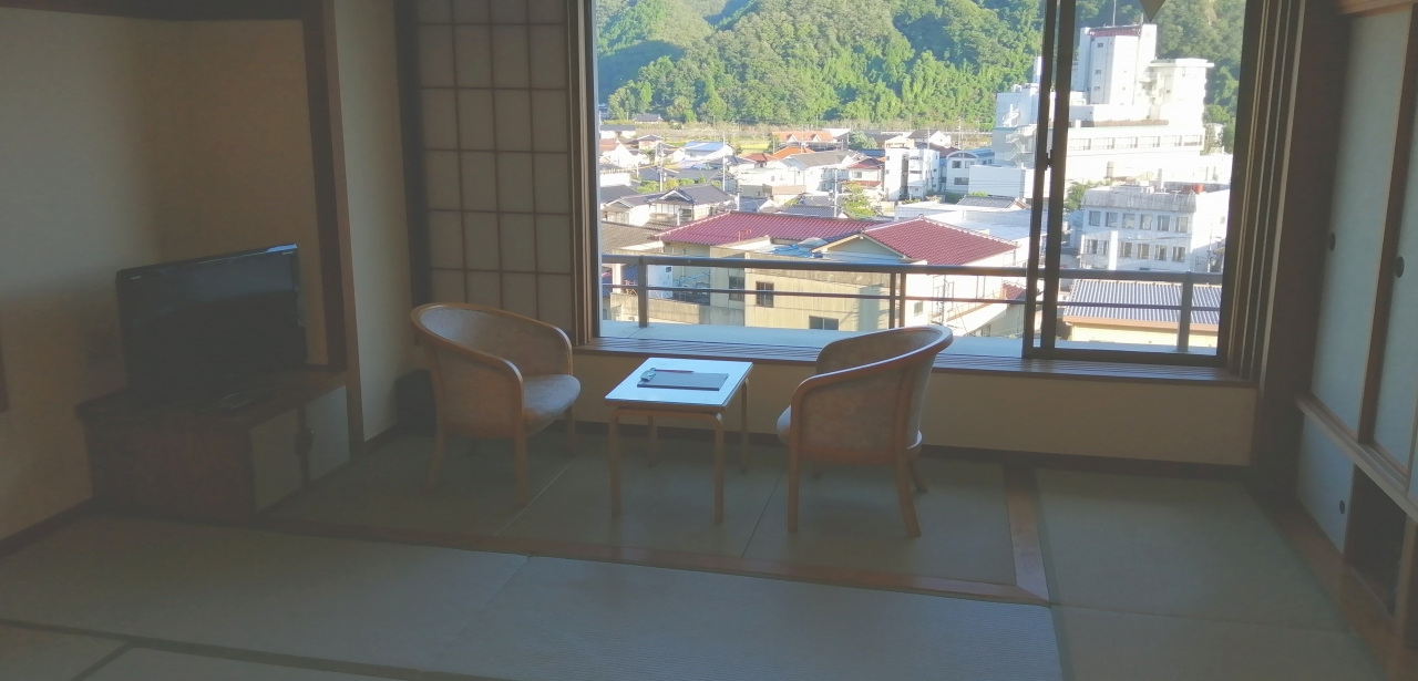 和室の部屋はグレードアップしたので広すぎる位でした。部屋の2面が窓でしたが、一方の窓の景色は温泉街で良かったのですが、もう一方は墓地が下に見えて気持ち良くありませんでした。展望大浴場と露天風呂が離れており、露天風呂も景観がなく残念でした。