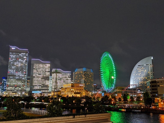 3階のテラスは喫煙スペースも兼ねており、ここからは観覧車など、みなとみらい地区の夜景を一望できます。