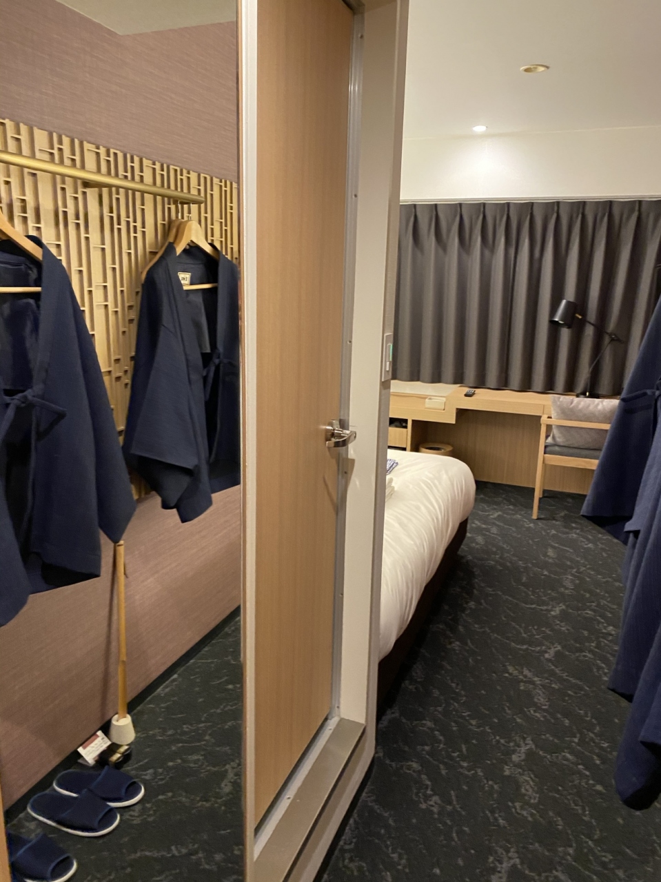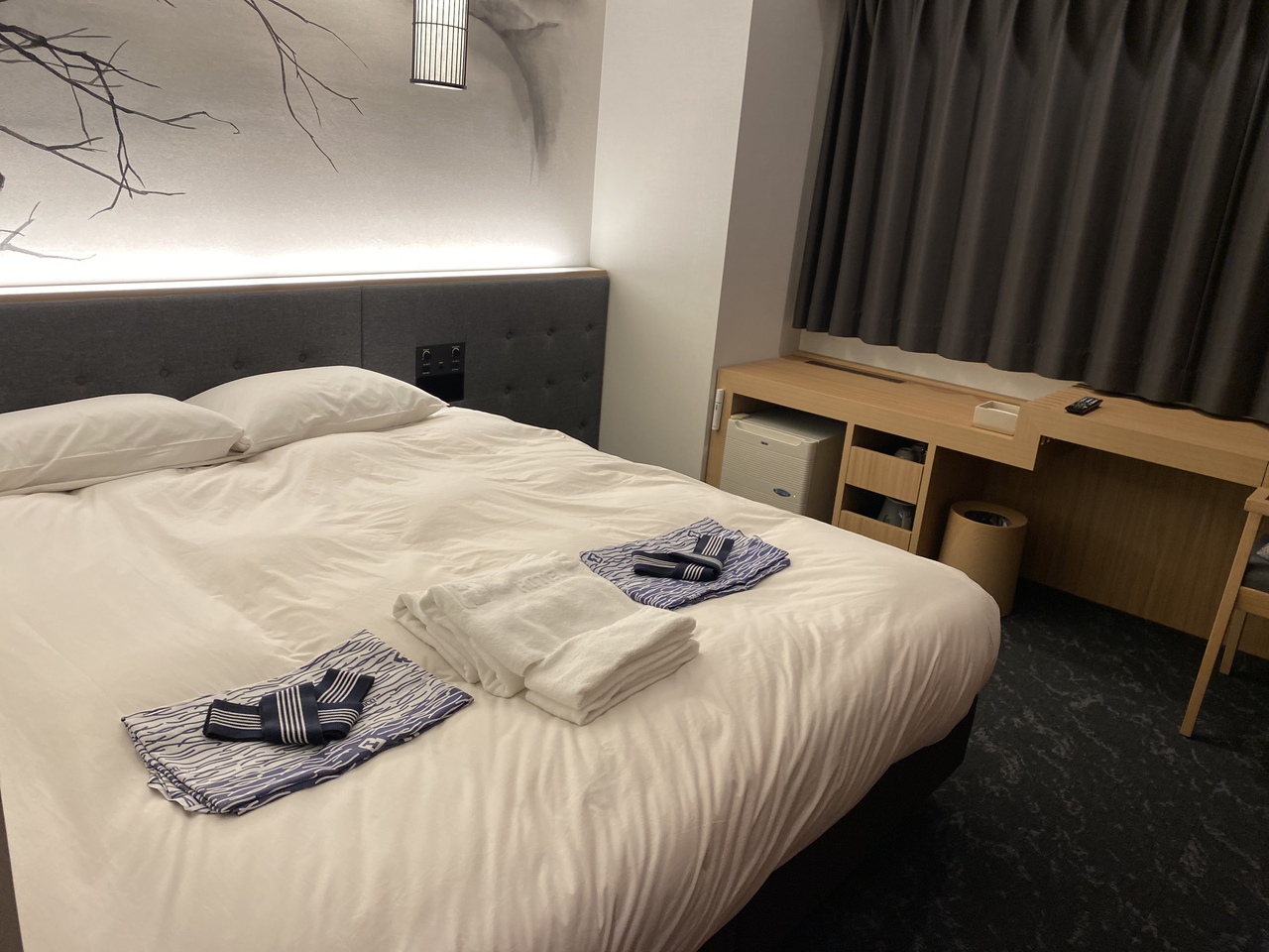 ビジネスホテルと温泉ホテルをミックスしたようなホテルで、上階は一般客も利用できる温泉になっている。いわゆるスーパー銭湯に宿泊ホテルがついたと言うイメージ。