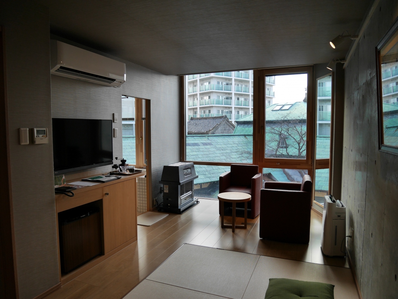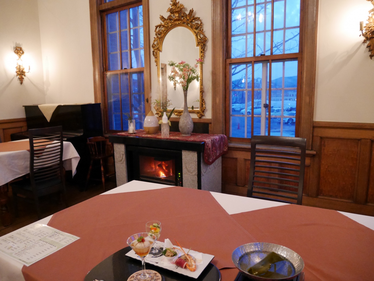 利用した前年に4階建ての宿泊棟を新たに建てオープンしました。フロントとレストランは大正時代に建てられた旧板谷邸の母屋と洋館を利用しています。夕食は歴史を感じる洋館のレストランで甘鯛の蒸し煮などおいしくいただきました。大正ロマン感じる母屋とデザイナーズマンションのような洒落た客室とのギャップがとても印象的でした。