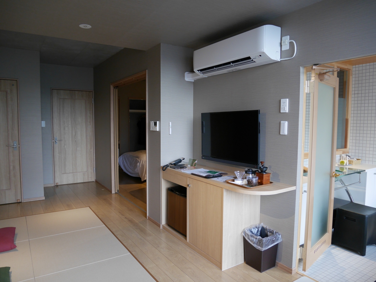 お部屋は2階の約10畳の和室です。窓側のテーブルの置かれた広縁部分も畳が敷かれ、より広く感じました。窓からは山々や端には遠く芦ノ湖も見えました。大浴場は男女別に... もっと見る