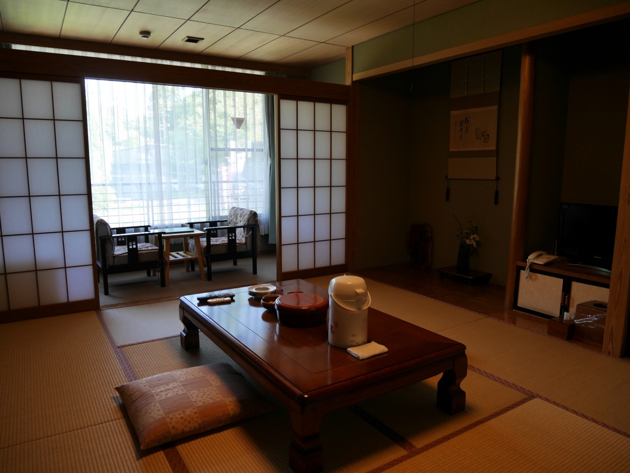 お部屋は2階の約10畳の和室です。窓側のテーブルの置かれた広縁部分も畳が敷かれ、より広く感じました。窓からは山々や端には遠く芦ノ湖も見えました。大浴場は男女別に... もっと見る