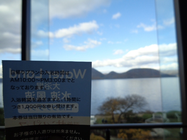 洞爺湖畔で日帰り温泉を調べたところ洞爺サンパレスの大浴場が良いと言う事で行ってみました。10時から15時まで大人1,000円。平日昼12時半と言う事もありお客さんは一人。洗い場と風呂のエリアが分かれているのでゆっくりと景色を見ながらはいれます。広いインフィニティ立ち湯 露天風呂が洞爺湖側にあり室内に向かうにつれていろいろな内風呂が並んでいます。内風呂寝湯から見る洞爺湖は巨大な黒縁の額に入った絵画のようでした。