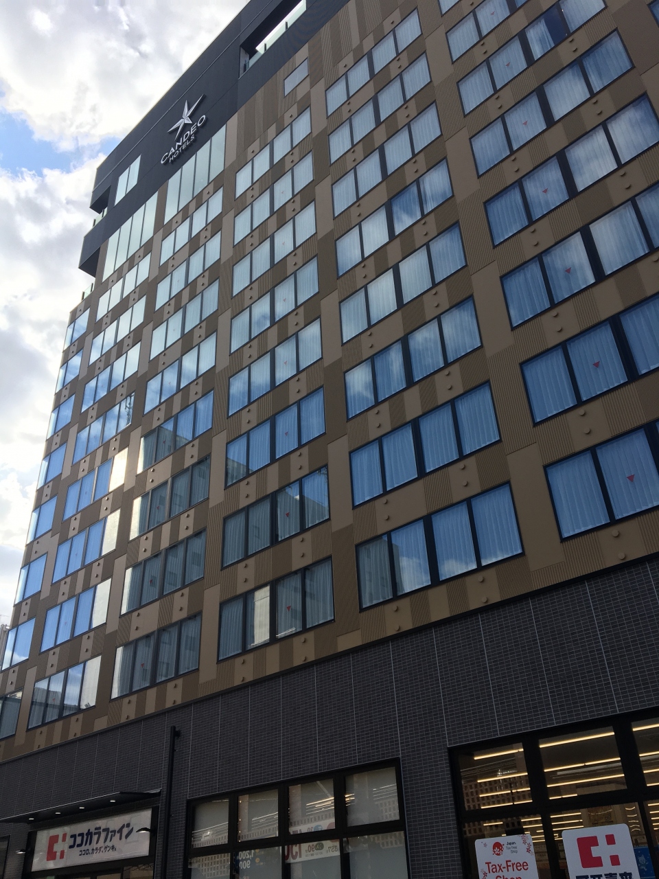 オープンして間もないこともあり館内は全てがキレイです。もともとカンデオホテルは高級ビジネスホテルといった括りのように思えますが、この店舗はさらにその上を行くプチシティホテル的な雰囲気を漂わせていました。繁華街にもほど近く階下にはドラッグストアも入居しているので何かと便利です。