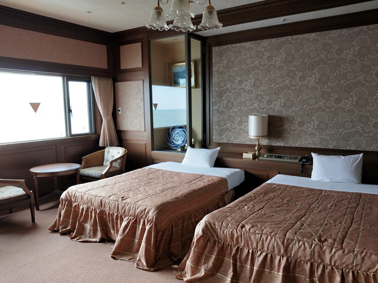 部屋の広い窓からは目の前に広がる綺麗な海を眺めることができてまさに絶景そのものでした。