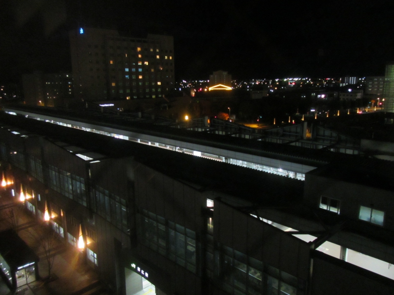 列車の様子は、駅前広場側(東面)の部屋より、裏側(西面)の部屋の方が駅壁面や屋根などに邪魔されずよく見えます。
